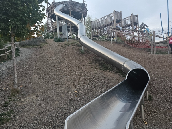 Watching the kids take on the structure, gradually daring more, cheering each other on, and then flying down the large slide at the end was one of those moments where you realise why this park works so well in this landscape. The height difference makes everything feel more adventurous, and the views from the top add an extra layer to it.
