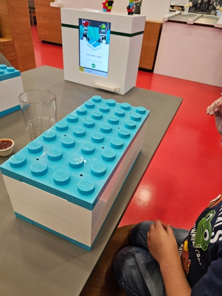 We had lunch at the Mini Chef restaurant, where ordering happens entirely through Lego. You build your own Lego figures, choose your meal using bricks, place everything on a tray and send it into the system.