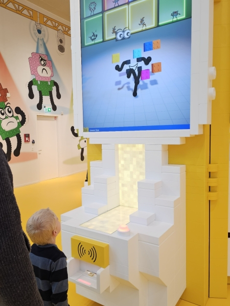 We laughed out loud at the dancing Lego characters people created. You design a simple 2D figure, choose an emotion such as happy, angry or excited, feed it into a machine, and suddenly it appears on screen, moving in the most exaggerated and ridiculous ways. Watching everyone’s creations pop up one after another became a game in itself.