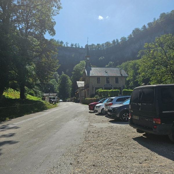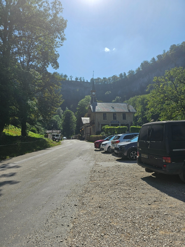 Another stop was Source du Lison, reached after yet another scenic drive through small villages and winding roads. The waterfall emerges from a cave at the foot of a massive rock wall, and the cooler air near the water is instantly noticeable, especially on a hot day.