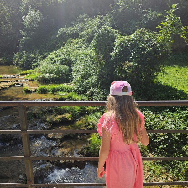 We skipped the caves this time. With the heat and one parent working remotely, it simply wasn’t the right moment. But standing near the waterfall, feeling the cooler air and watching the clear water flow, was more than enough to create that unmistakable wow-feeling the Jura does so well.